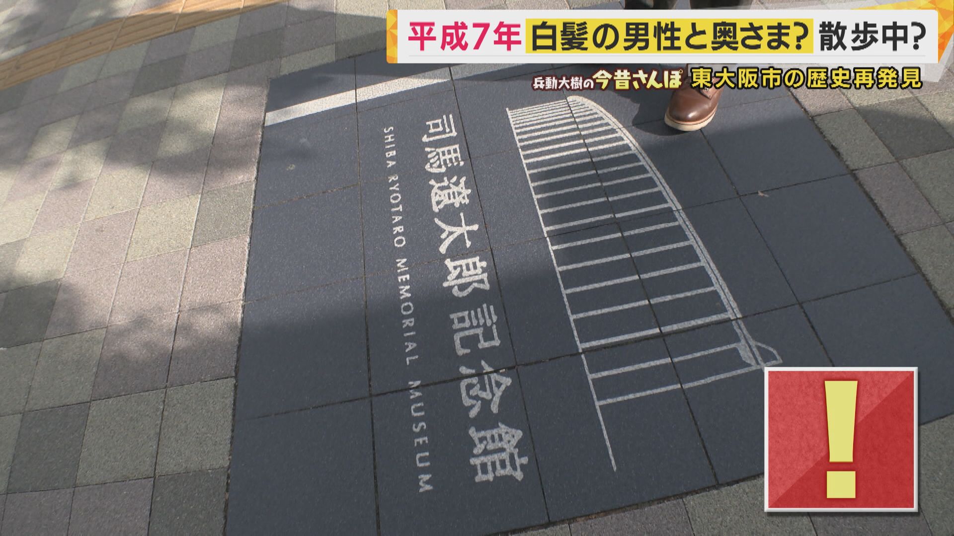 近鉄・八戸ノ里駅前からスタートした兵動さん。足元に「司馬遼太郎記念館」の案内を見つけ、写真の人物は、司馬遼太郎さんではないかと気付きました。