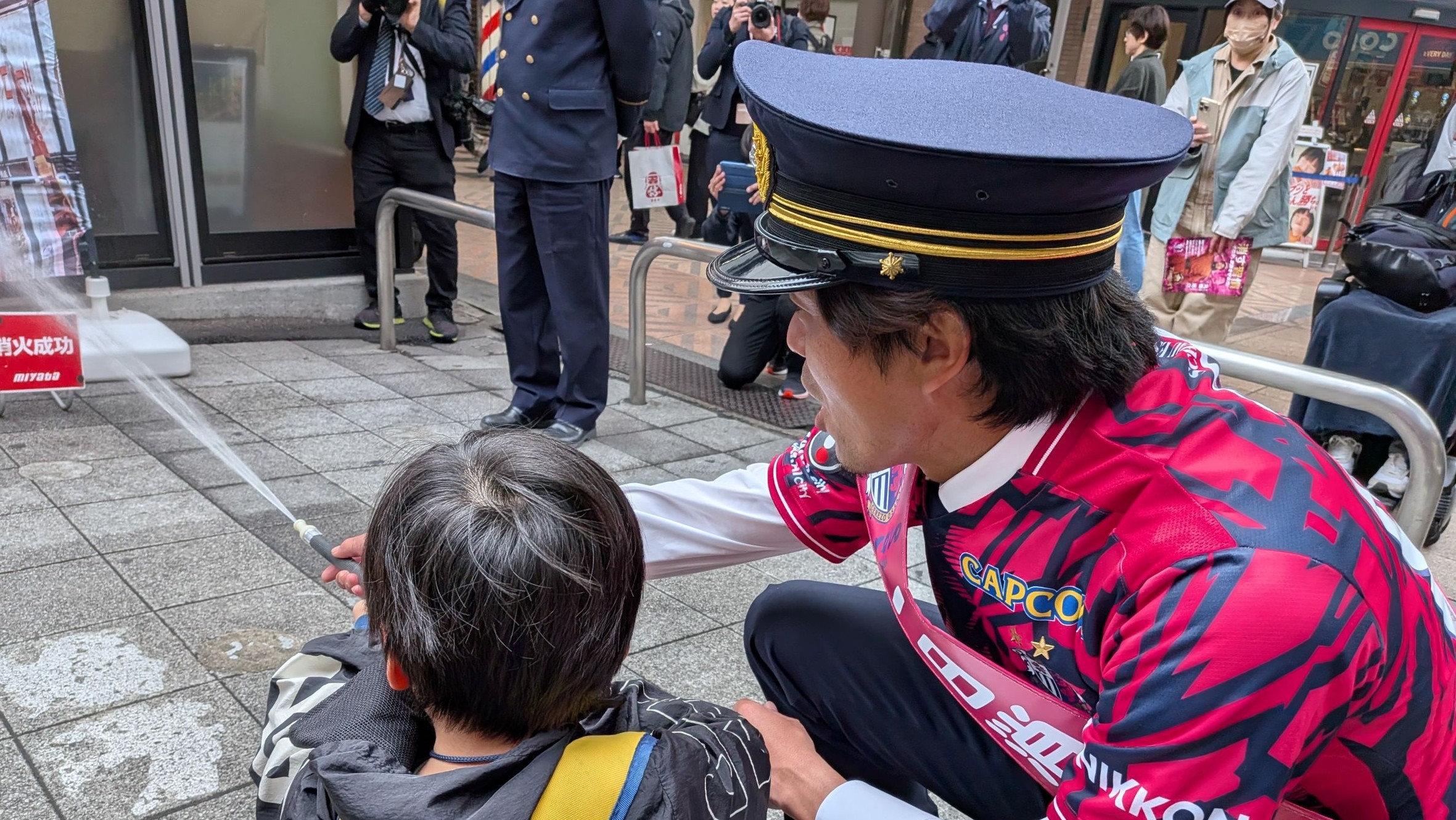 午前中、北消防署で隊員たちとともに訓練に臨んだ丸橋氏は、人命救助の最前線に立つ署員たちの無駄のない俊敏な動きに深い感銘を受けた。「消す習慣 それが、家族を守る力」という標語を胸に、午後は多くの人々が行き交うJR天満駅前へと場所を移し、市民への直接的な呼びかけを開始した。 駅前で行われたAED(自動体外式除細動器)体験や水消火器による模擬消火訓練では、丸橋氏自らが参加を促すと、老若男女多くの市民が足を止めた。 福岡から訪れていた50代の女性は「『1、2、3、シュー!』と、思った以上に簡単にできた。今回の試みでサッカーという存在もより身近に感じられた」と笑顔を見せた。