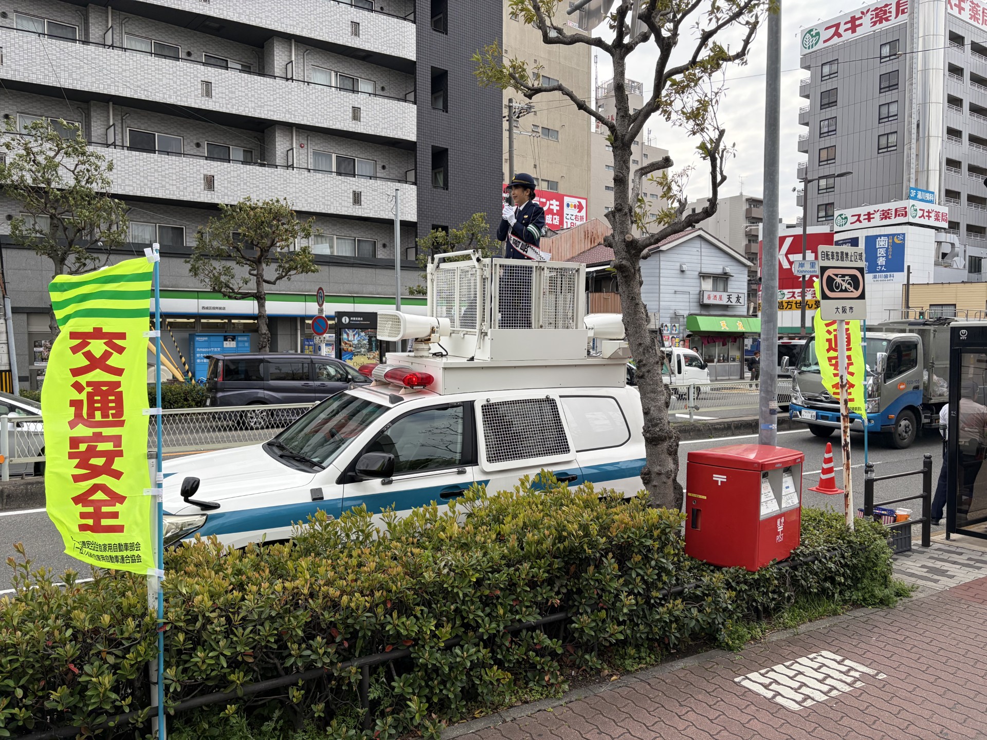 さて、春の交通安全週間では、西成署の一日警察署長をさせていただきました。