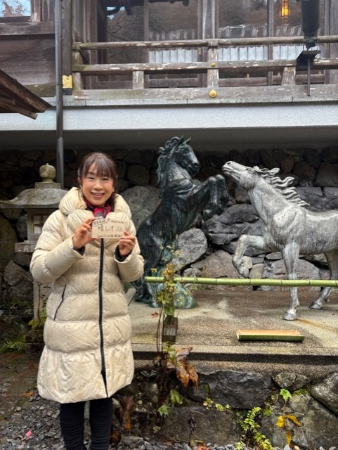 本番では、スタジオに新浜レオンさんがいらっしゃったので、絵馬が発祥と言われるここから「年末年始の晴レオン!!」をお願いしました。