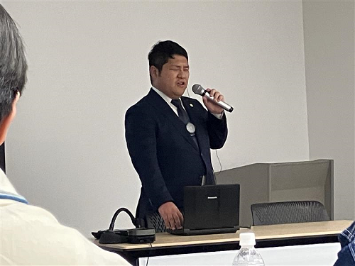 講師は日本ユニバーサルマナー協会と株式会社ミライロで活躍する原口淳さん。原口さんは生まれつき視覚障害があり、全盲。ご自身の実体験も交えて力強いメッセージを込めてお話しして下さり、受講者全員が話に引き込まれました。視覚障害や聴覚障害の方、そして高齢者などの視点に立ち、どうやったら適切な声かけやコミュニケーションを取って行くことができるかなどについてとてもわかりやすく説明して頂きました。講習会では参加者同士のグループワークもあり、様々なシチュエーションに対しての意見を交わしました。