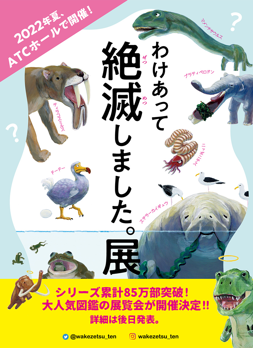 シリーズ累計100万部突破︕⼤⼈気図鑑が『わけあって絶滅しました。』シリーズが初の⼤型展覧会化で登場!