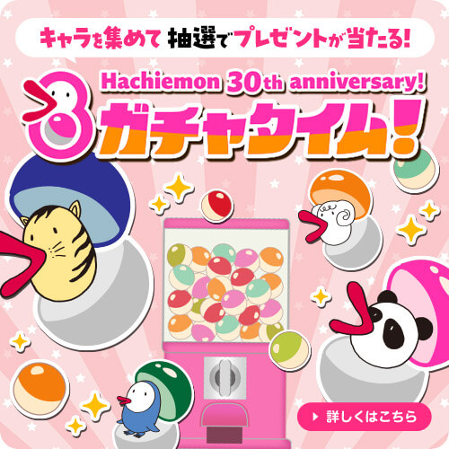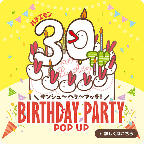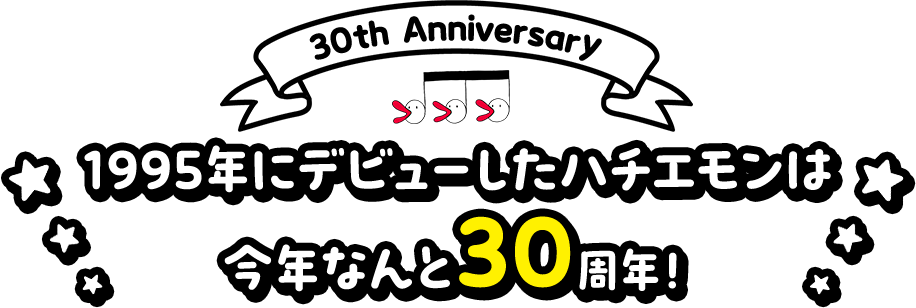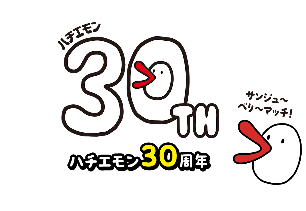 とってもおめでたいハチエモンの30周年を祝して様々な企画を行います。