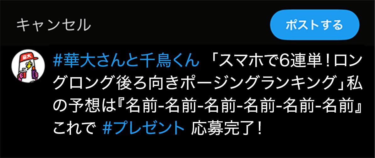 ※ハッシュタグ(#華大さんと千鳥くん)は消去・変更せずに投稿お願いします。