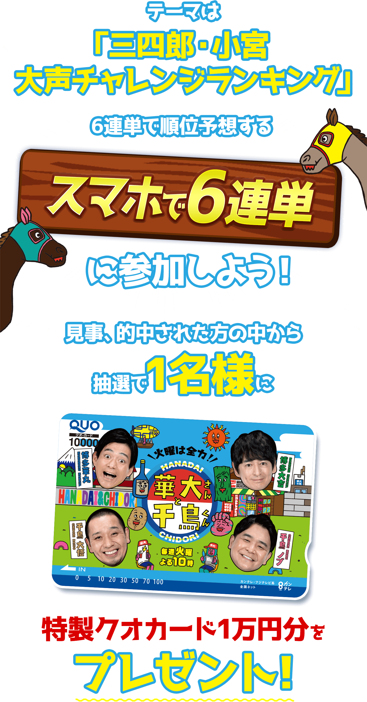 「スマホで6連単」に見事、的中された方の中から抽選で特製クオカード1万円分 × 1名様