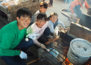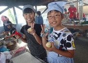 | 昼 | 昼食 水泳 テント設営(高学年) 野外炊飯(夕食づくり) |