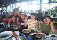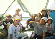 | 夜 | 入浴 グループタイム灯ろう流し 就寝 <高学年:テント泊> <低学年:施設泊> |