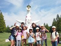 第1回は、関西テレビ本社で発会式をしたあと、みんなで電車に乗って万博記念公園に行きました。入口では、太陽の塔が出迎えてくれました☆