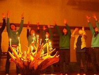 行きのバスでは37期生が初めてゲームを担当し緊張感に包まれながらも楽しく曽爾へ向かいました♪曽爾に着くとあいにくの雨だったので、室内で棒パン作りをしました。初めて挑戦することだったので、時間がかかったけど、美味しくいただくことが出来ました。夜はキャンドルファイヤー。各期ごとに夏に向けての決意を発表しました。