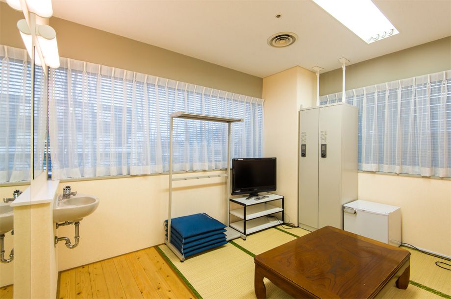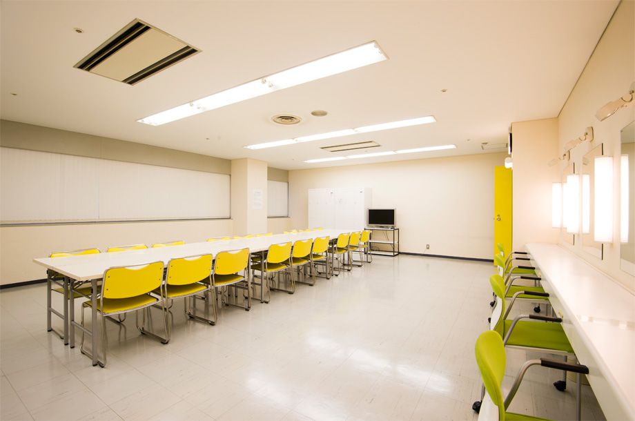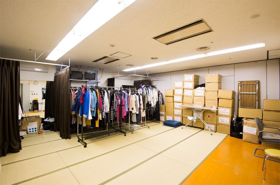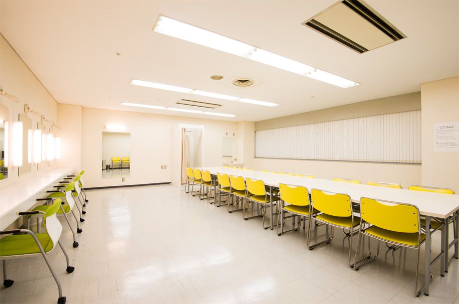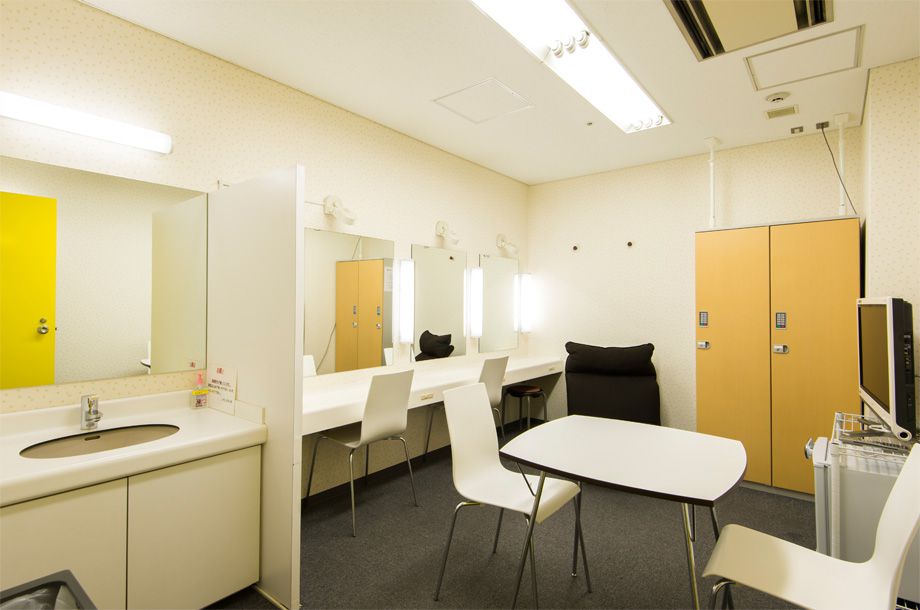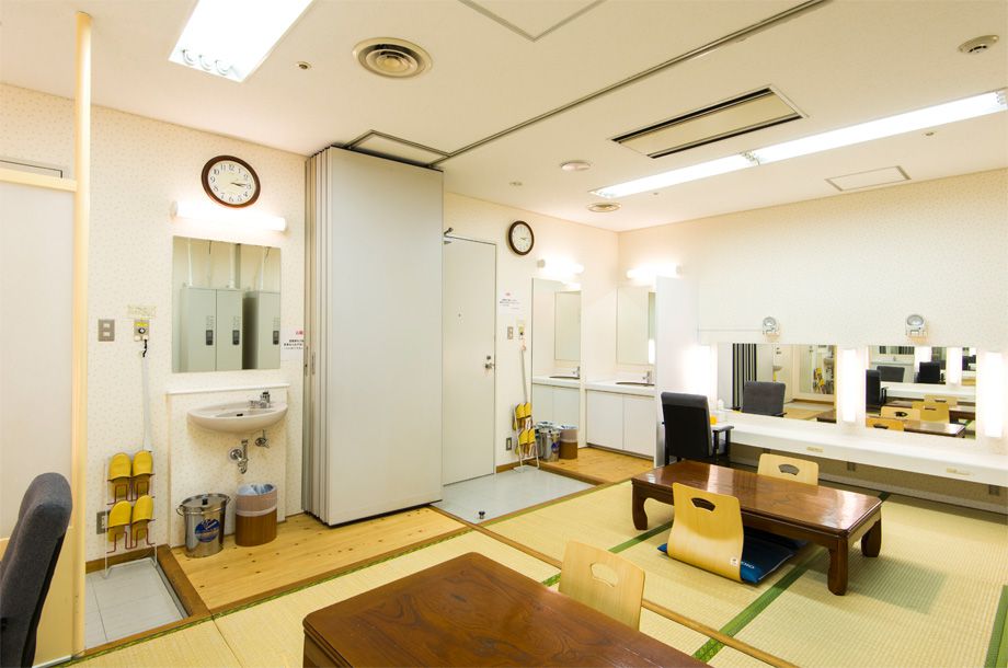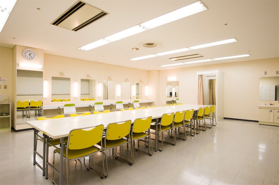1Fには床山、2Fには22人分の化粧前が用意されたメイク室とシャワールーム、3Fには56人収容の仮眠室も共用でご利用いただけます。