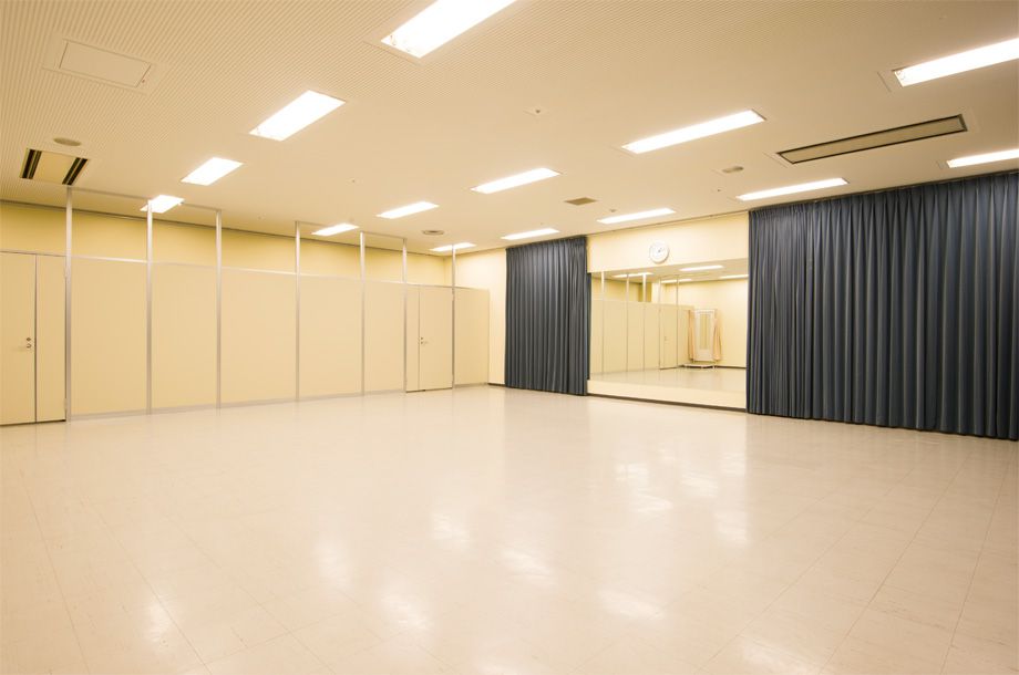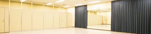 リハーサル室は、100㎡と余裕のスペースを確保し、大きな鏡も装備しています。