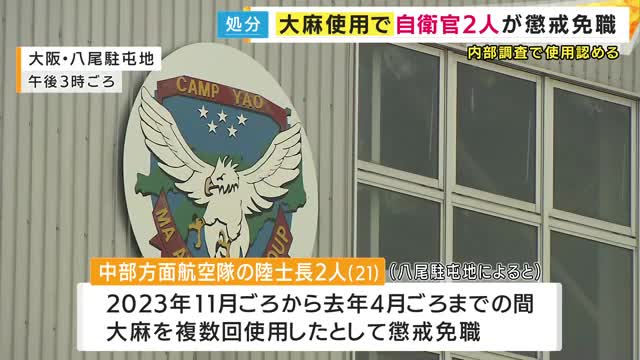 大麻使用で自衛官2人が懲戒免職 疑った同僚が上司に報告 内部調査でともに使用認める 02/03 19:37