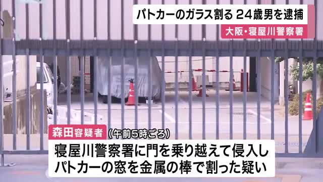 警察署に侵入しパトカーの窓割る 24歳無職の男を現行犯逮捕「家から持参の金属棒で叩いた」容疑認める 大阪・寝屋川市 01/29 12:35