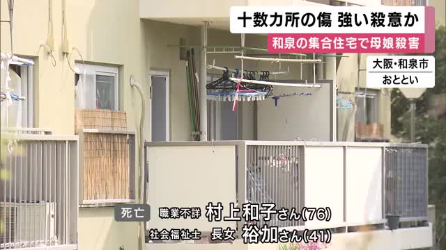 首などに少なくとも十数カ所の傷 強い殺意か 大阪・和泉市の集合住宅で母親と娘殺害 勤務先の事務長「真面目に働き周囲から信頼されるスタッフ」 04/10 12:07