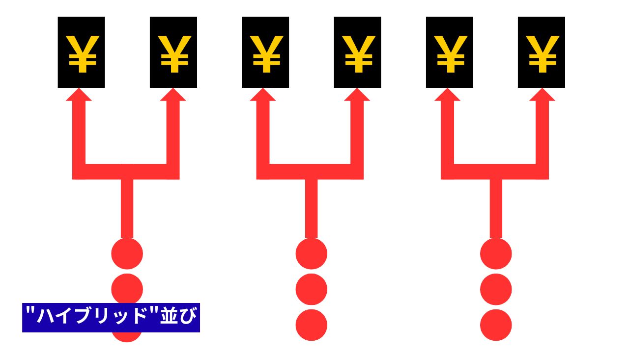 これらの不満が解消される方法として最近、スーパーなどで増えているのが、「並列並び」と「一列並び」」の良い所を活かした「ハイブリッド方式」です。