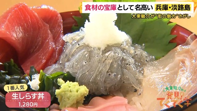 グルメやショッピングが楽しめる「淡路島タコステ」で、1日300食も売れているという生しらす丼を前に、大東さんの目が輝きます。