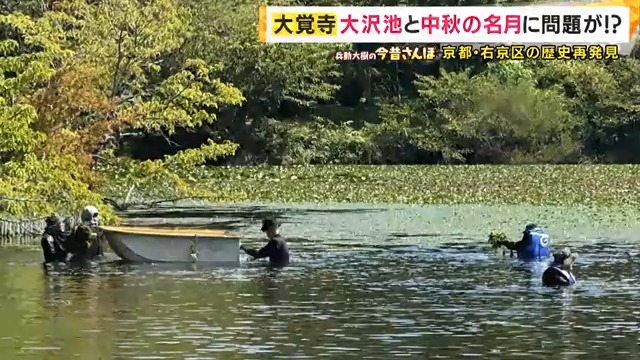 【大覚寺・喜和田さん】「それを私たち職員がウェットスーツを着て池に入ってですね、皆さんが綺麗に月を見ていただけるために、みんなが一生懸命、ヒシ刈りを毎年何度もいたしております」