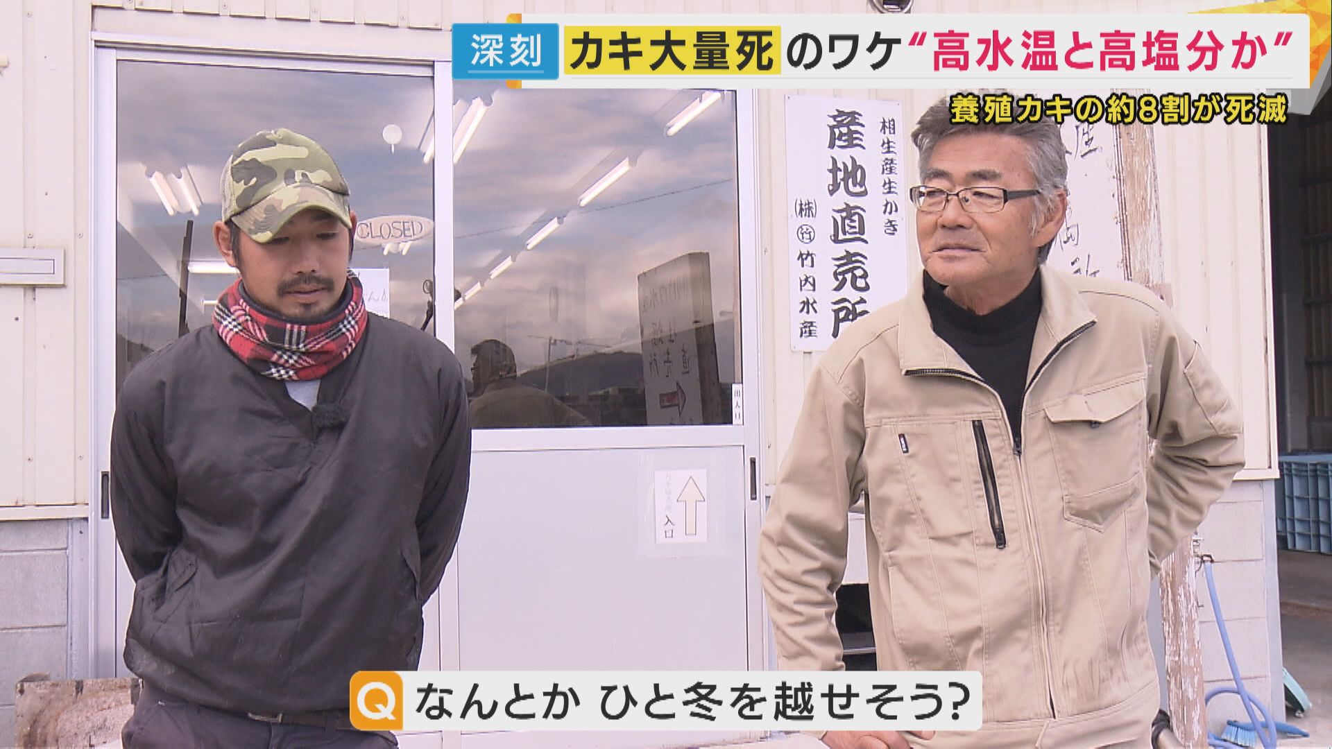 兵庫県相生市で最大規模の養殖場を持つ「竹内水産」の竹内大騎さんは、引き上げたカキを見せながら不安を隠せない様子でした。
