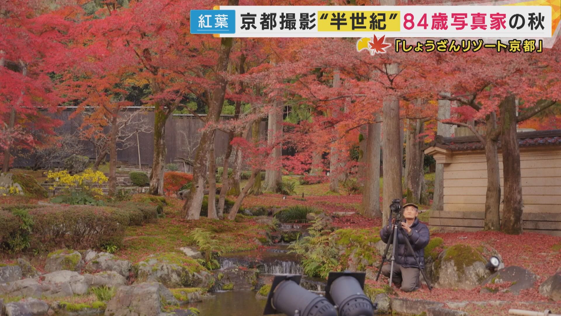 この日は克比古さんの行きつけの撮影場所、京都市・北区にある「しょうざんリゾート京都」へ。鮮やかに色づいた紅葉と、京都らしさあふれる美しい庭が広がります。
