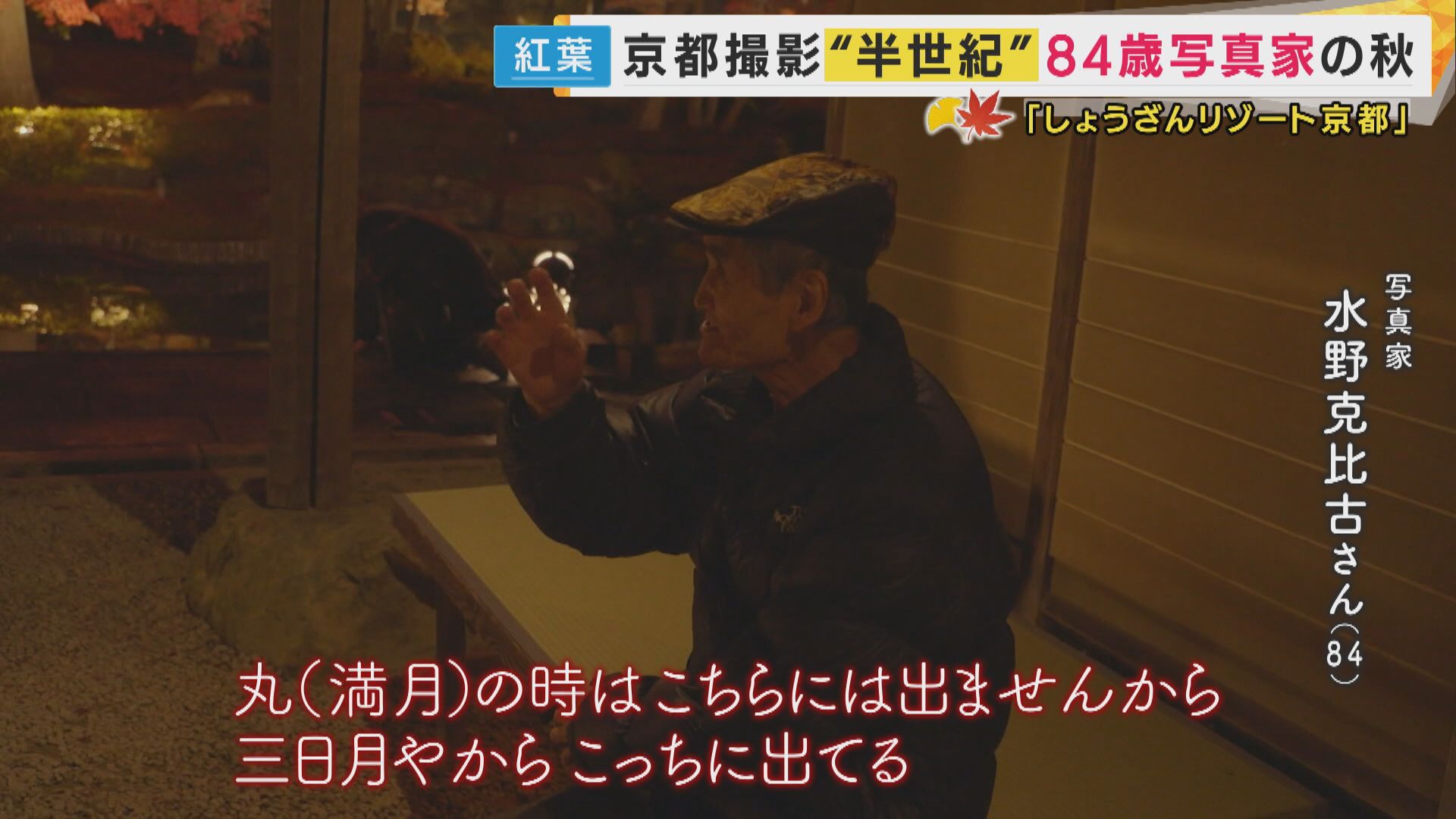 【水野克比古さん】「京都の風景写真で最初に目を向けたのが紅葉だったので。劇的な変化をする葉っぱのおもしろさっていうんですかね、それに魅せられたんですよね」