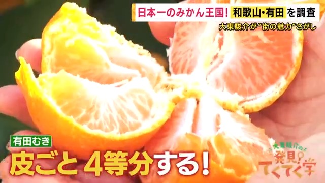 有田むきを披露した大東さん、みかんを食べると…