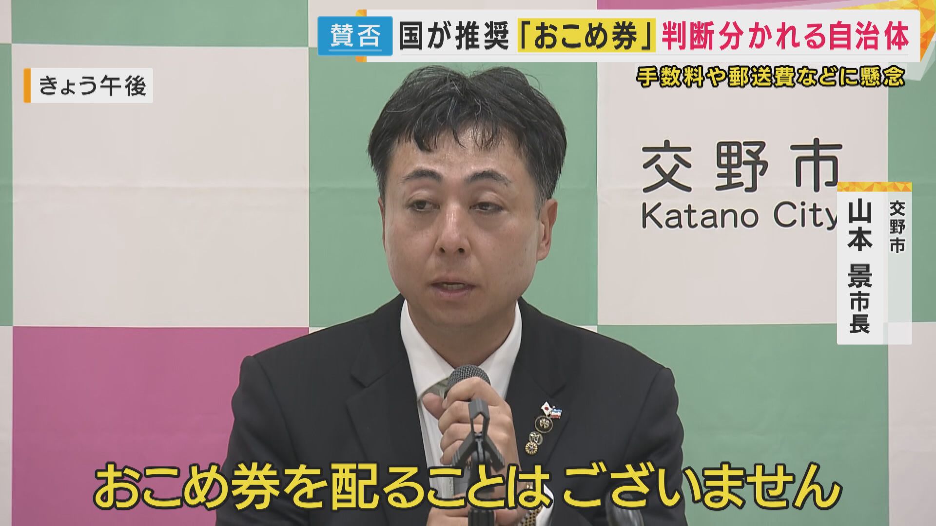 一方、きょう=5日、大阪府交野市の山本景市長は記者会見で「おこめ券」の配布を明確に否定しました。