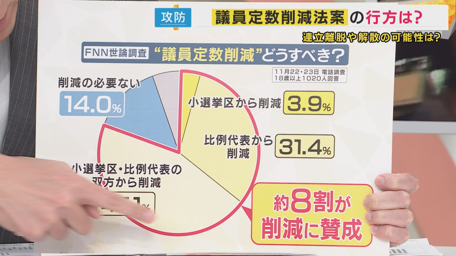 (※…先月22日・23日に実施したFNN世論調査の結果では、議員定数削減法案について約8割の人が賛成)