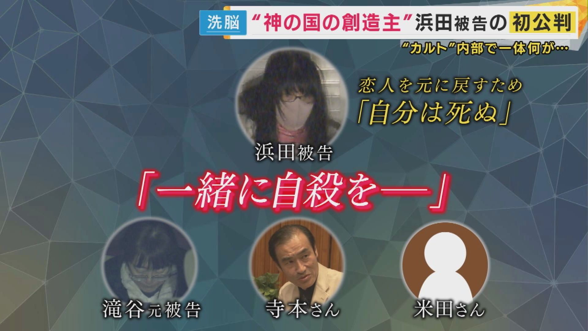 浜田被告は「恋人を元に戻すために自分は死ぬ」ので、信者の滝谷元被告と寺本さん、米田さんに「一緒に自殺をするよう」に話したといいます。