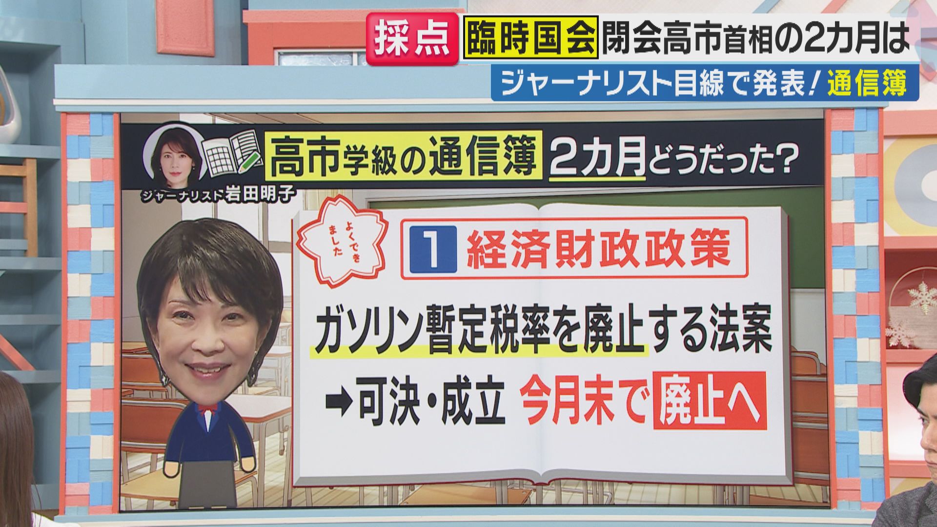 臨時国会が閉会した今、元NHK政治部記者の岩田明子さんが政治ジャーナリストの視点から、高市早苗首相の就任から2カ月間の実績と課題を「よくできました」、「がんばりましょう」の2段階で評価しました。