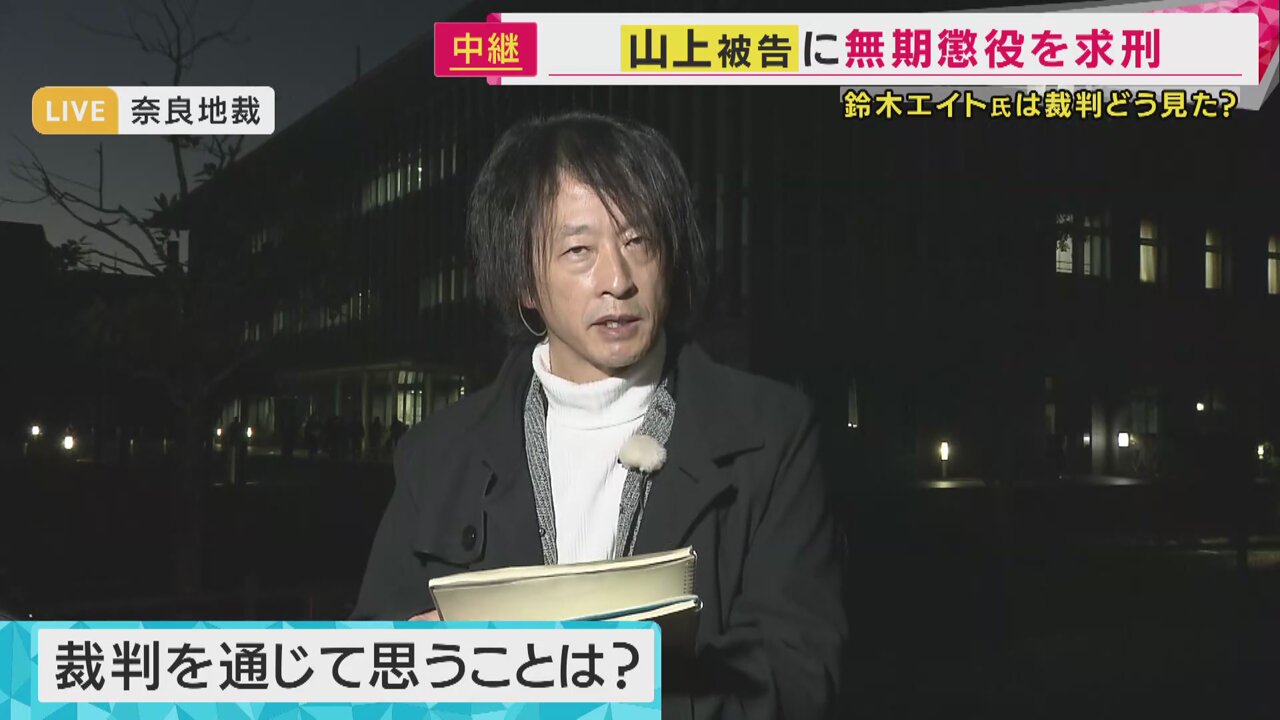 山上被告「無期懲役」求刑に 「すべての事実のもとで判断できるか未知数」旧統一教会を長年取材の鈴木エイト氏12月18日 20:41