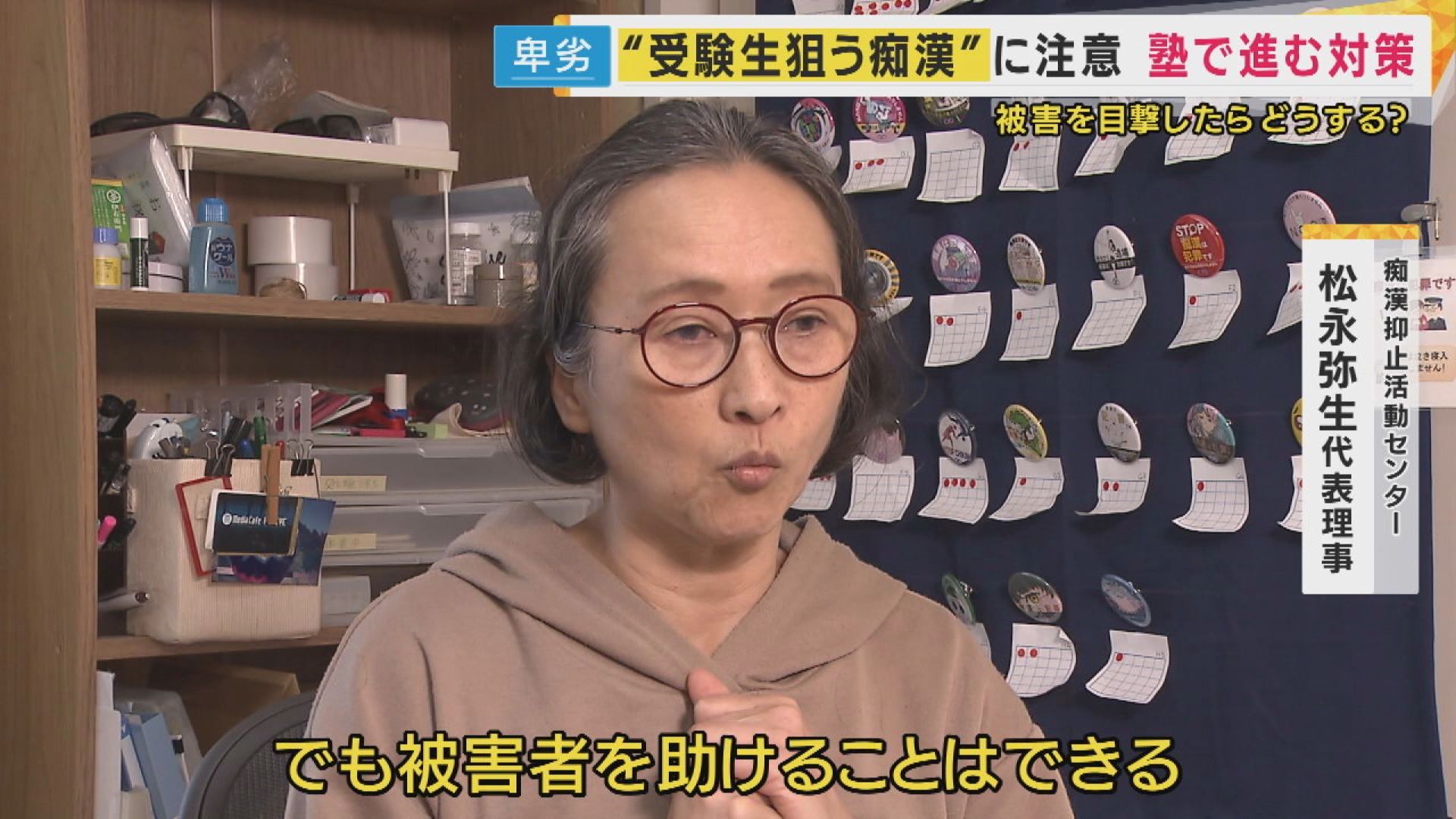 【痴漢抑止活動センター・松永弥生代表理事】「必ずしも(加害者を)捕まえなくていいと思います。私は加害者捕まえるのって、私たち一般市民にとってはハードル高い。