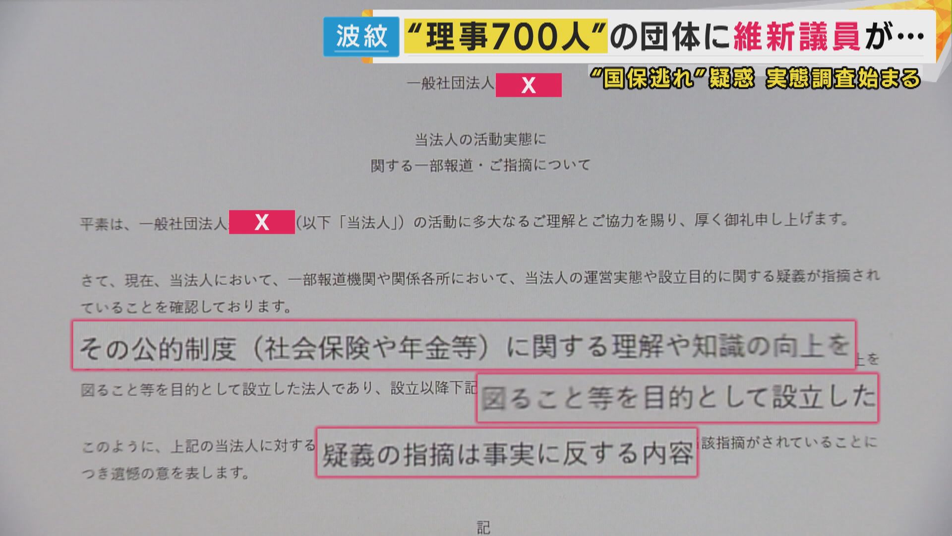 【法人Xのコメントより】「現在、当法人において、一部報道機関や関係各所において、当法人の運営実態や設立目的に関する疑義が指摘されていることを確認しております。