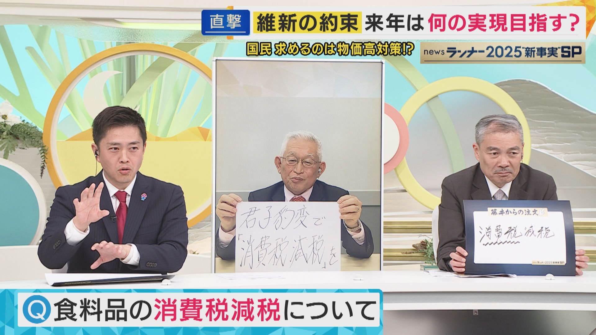 維新・吉村代表「食料品の消費税はゼロにすべき」「財源の5兆円は(税収の)上振れ財源で対応できる」泉房穂参院議員と京大・藤井教授から揃って“注文”議員定数削減と「どっちもやったらいい」と語気強める場面も12月26日 21:25