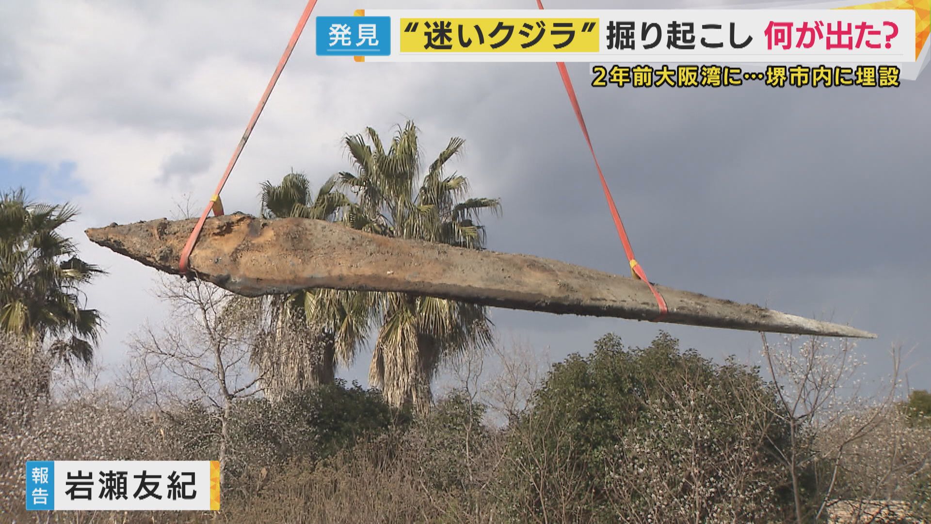 堺市西区の海辺で8日、大がかりな作業が。掘り起こされていたのはクジラの骨です。