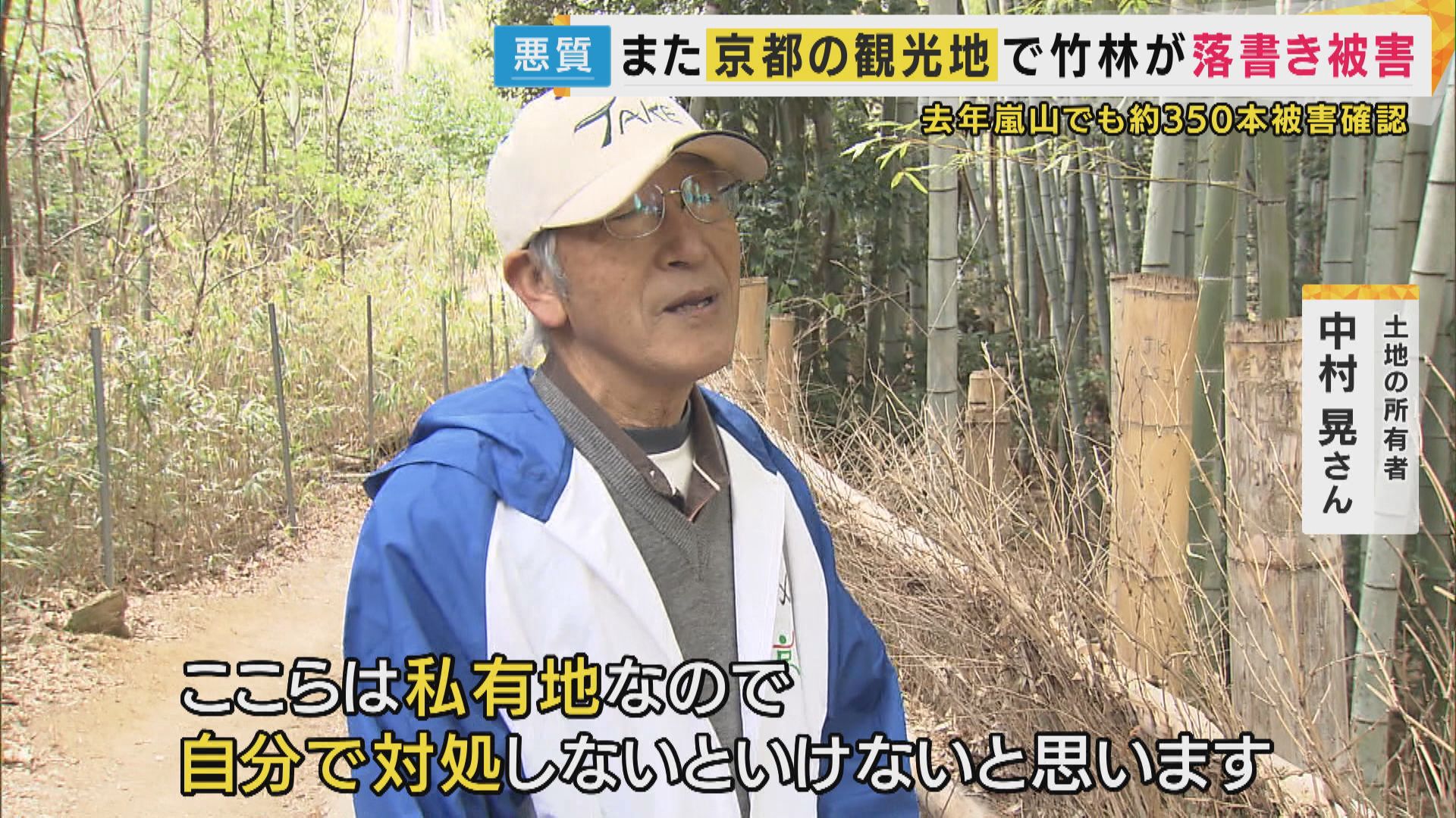 竹に刻まれていたのは、アルファベットや中国語、韓国語とみられる文字。竹林の所有者によるとこうした被害はコロナ禍があけてから急増。