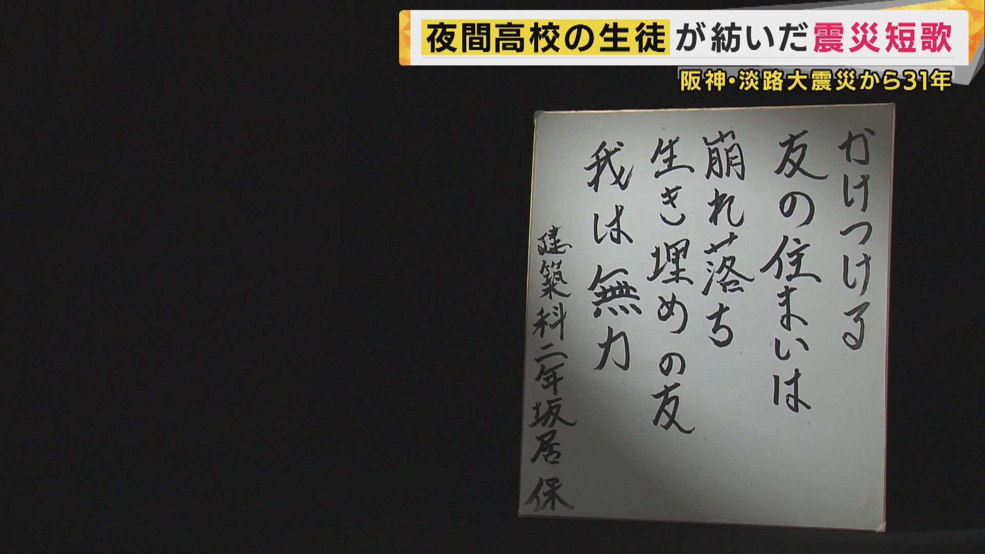 阪神・淡路大震災から31年。懸命に言葉を紡いだ生徒たちの短歌は、今も震災の記憶を未来へと繋いでいます。