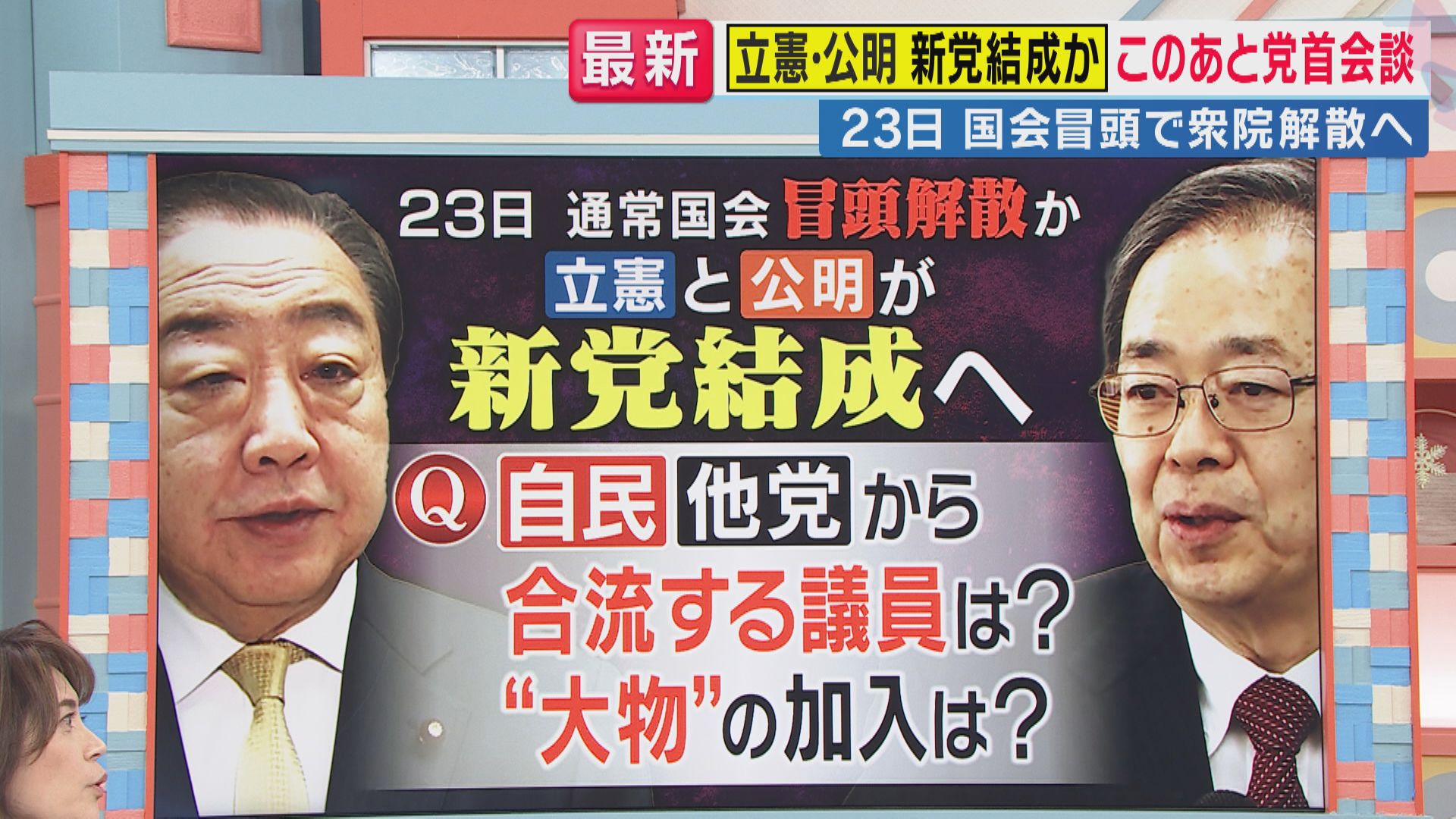 23日の国会冒頭で衆院解散となりそうな中、野党の立憲民主党と、与党の公明党が新党を結成に向けた動きが注目を集めています。