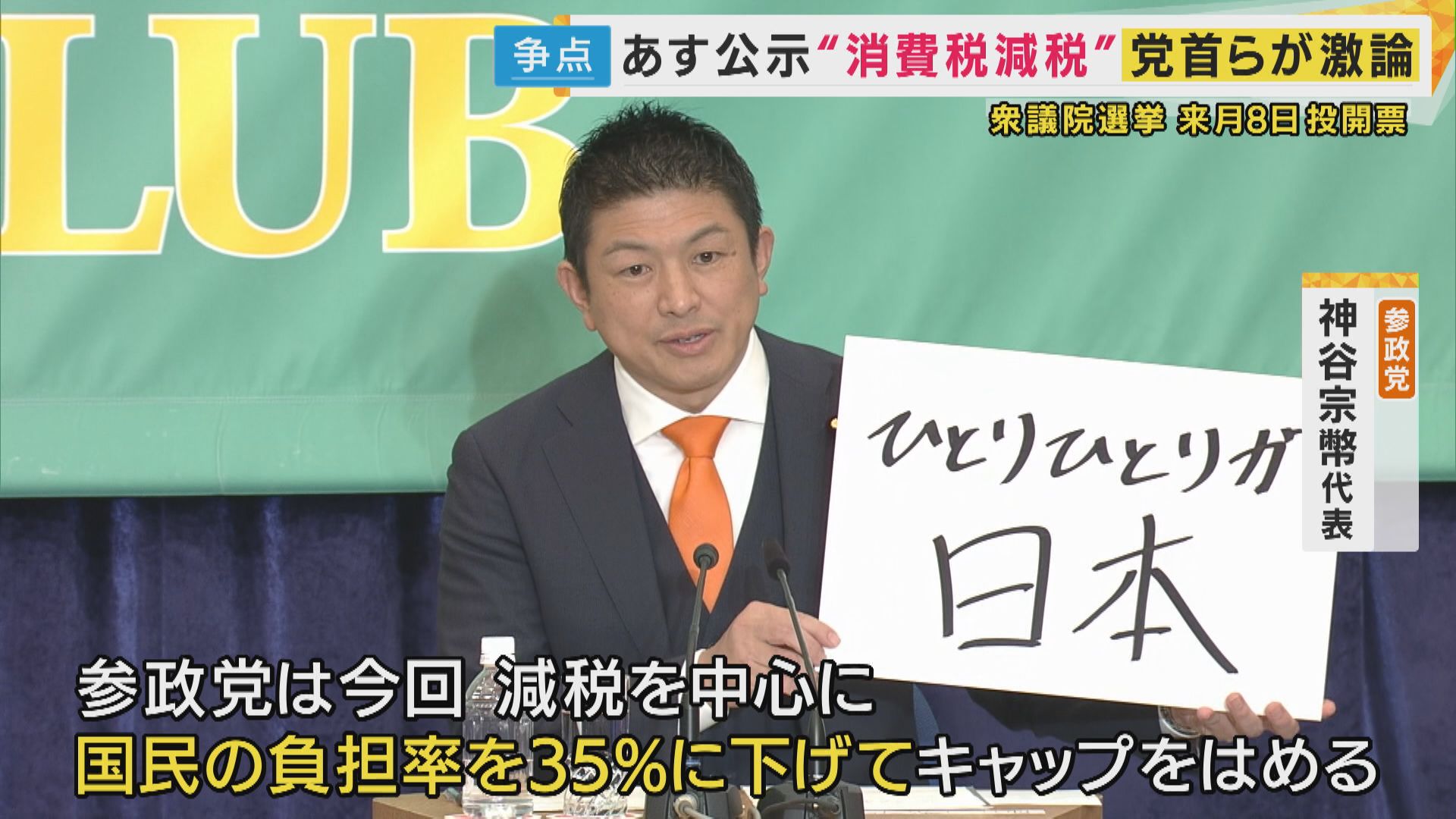 ■「減税を中心に国民の負担率を35%までに下げる」参政・神谷代表