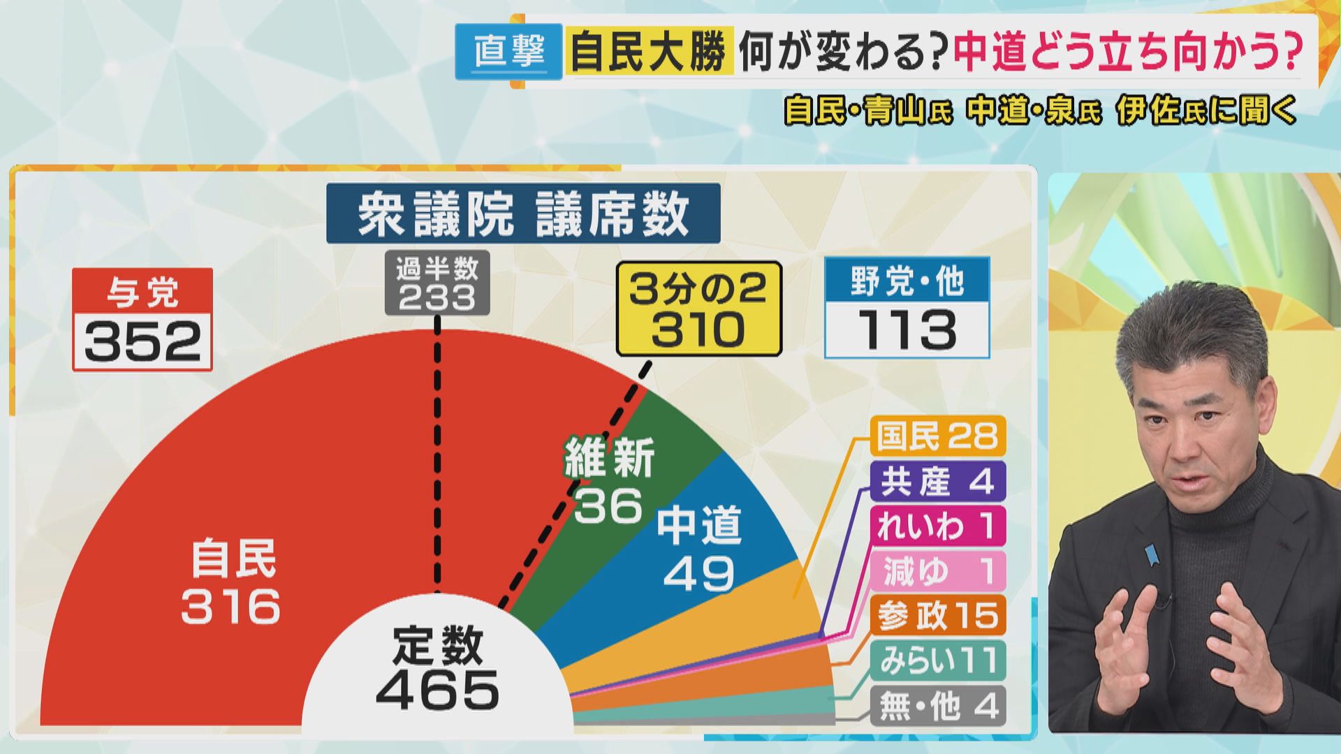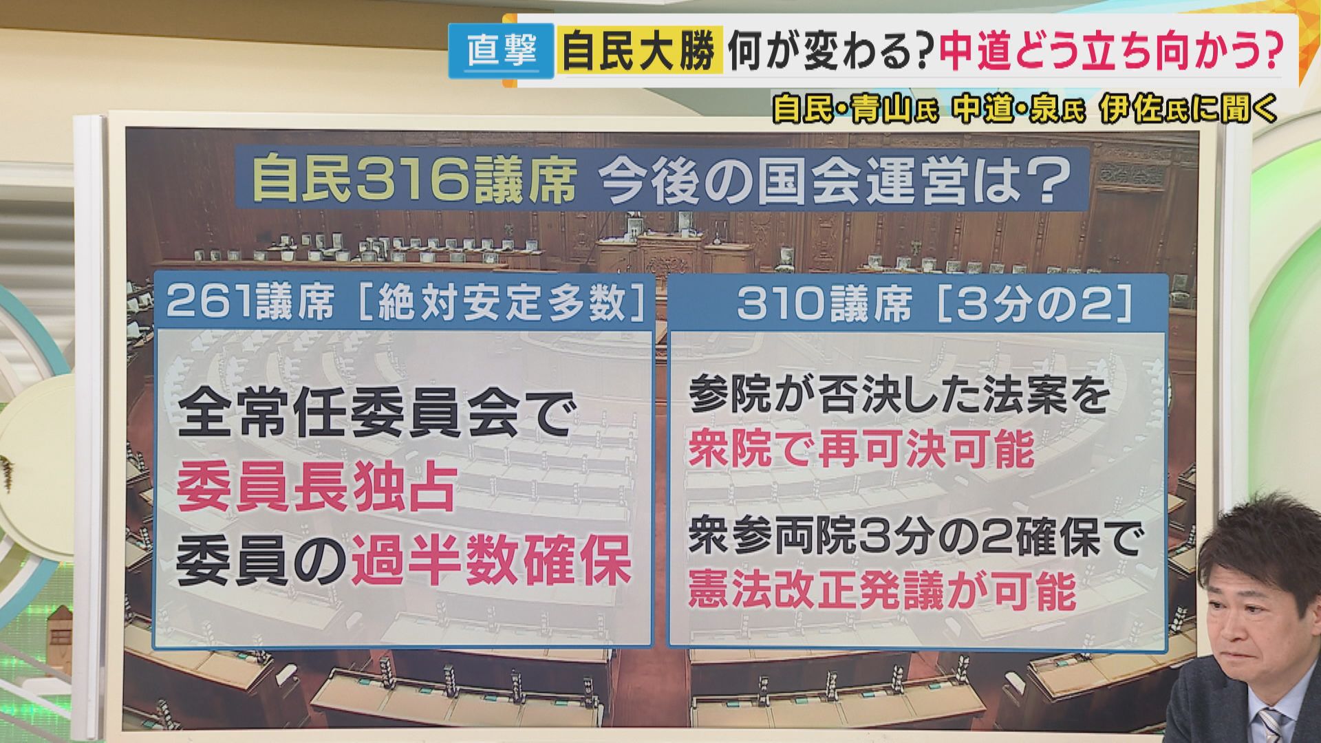 さらに中道の泉さんは、選挙結果によって、野党は議会での質問時間の比率や委員会運営のの主導権といった面で、活動が大きく制約されることになったと説明。