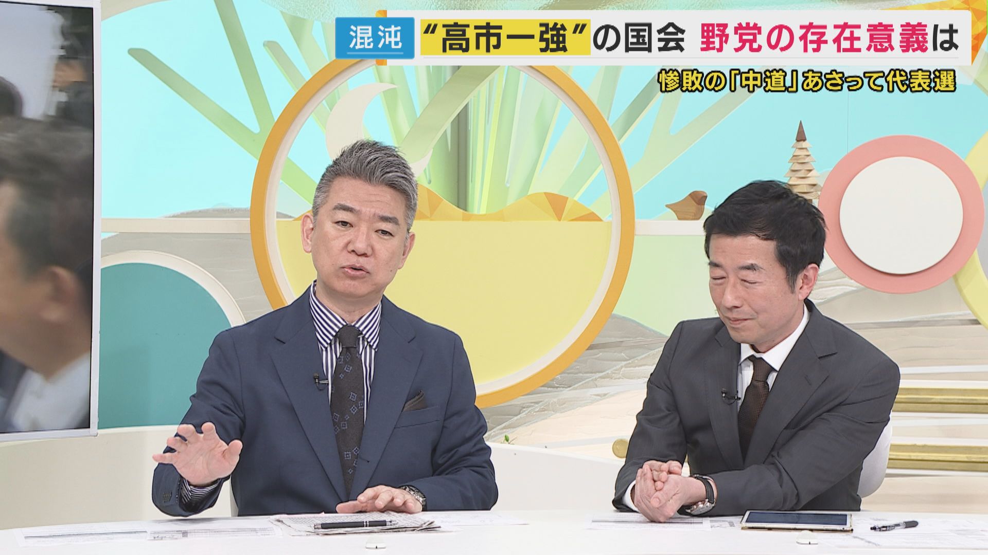 「ブレーキ役の存在感ある野党は必要」と訴える元テレビ朝日アナウンサーで弁護士の西脇亨輔さんは、「リベラル」を巡って「背骨にある理念は必要」と話し、橋下さんが「言葉は使わなくていい」と反論するなど激論となりました。