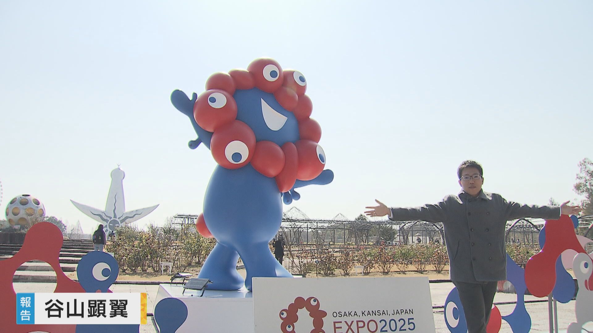 【記者リポート】「太陽の塔の裏側にやって来ました。こちらにもミャクミャクが設置されていて、みなさん『ワクワク』のポーズをとっています」