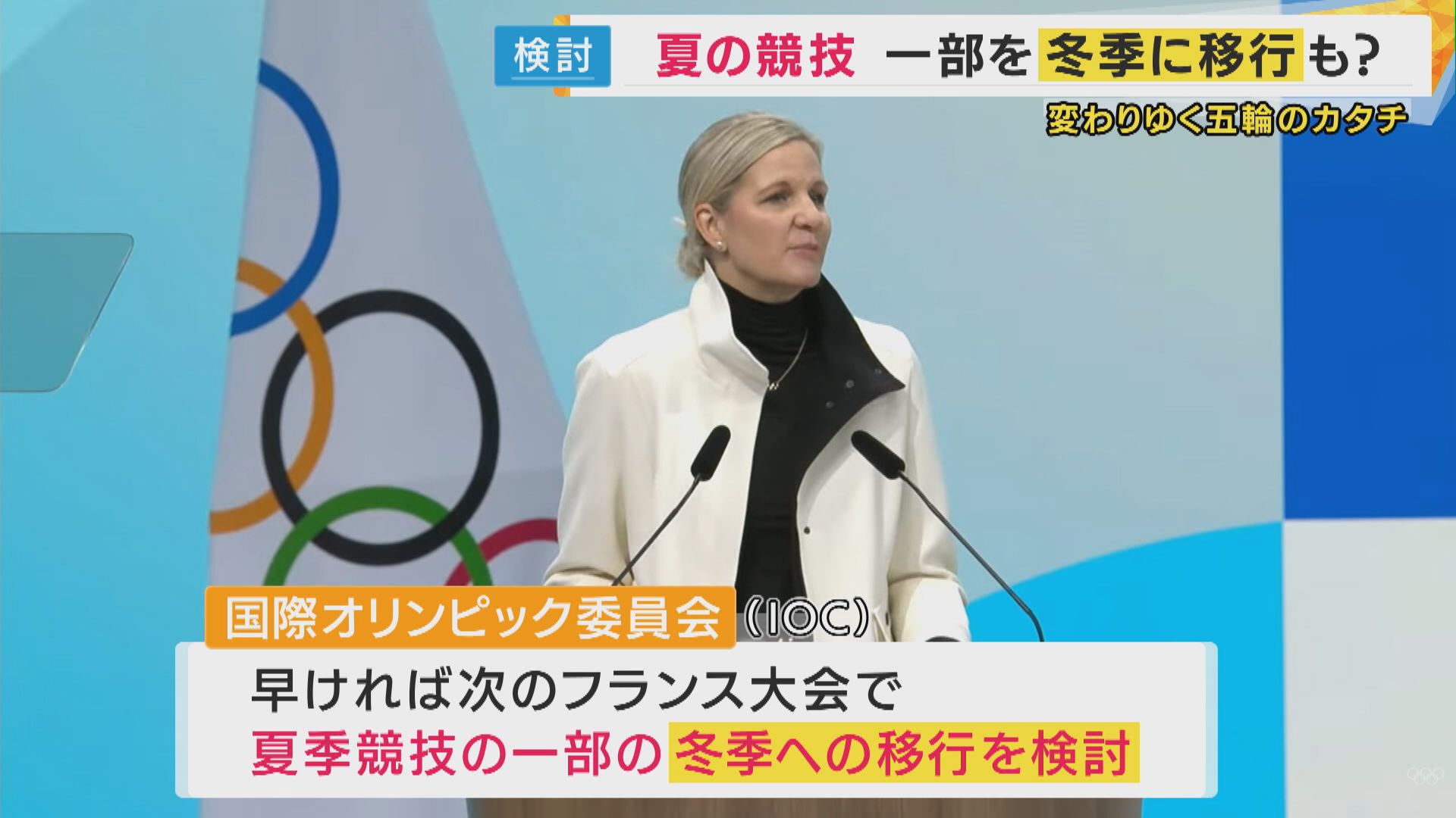 【日本オリンピック・アカデミー 野上玲子委員】「屋内競技を中心とした種目がいくつか挙がっていて、一部の競技を夏から冬に移さないと、開催国のコストの面であったり、競技数の数が全く違うので、少し均衡させようという意思があるんだと思う」