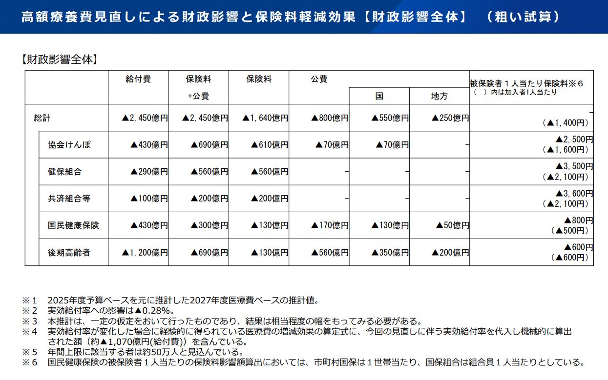 高額療養費見直しによって軽減される社会保険料は加入者1人当たり年間1400円。