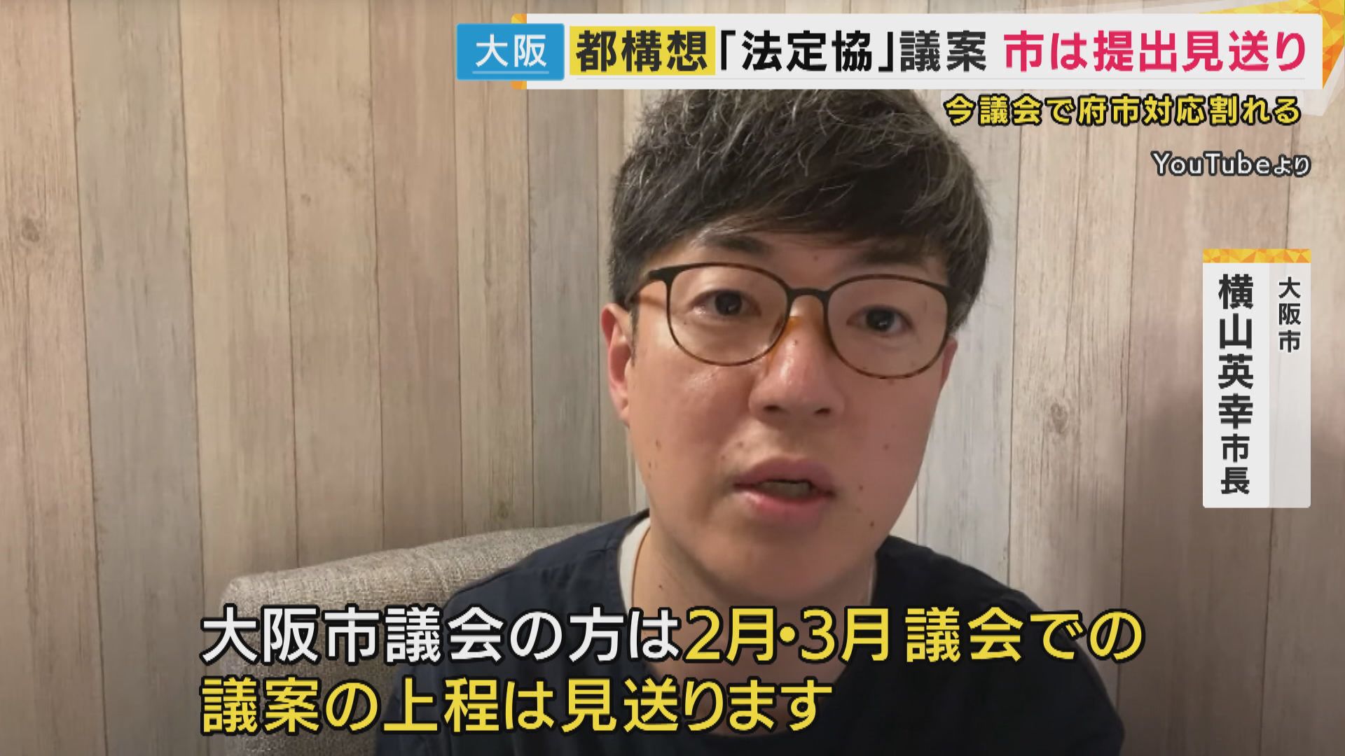 【大阪市・横山英幸市長】「大阪市議会の方は2月・3月での議会での議案の上程は見送ります。すべて私の判断です」