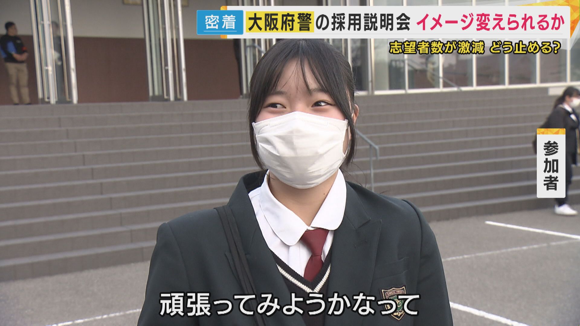 きつい、怖い、厳しいそんなイメージを払拭しようと、大阪府警が取り組んでいる採用活動に密着しました。