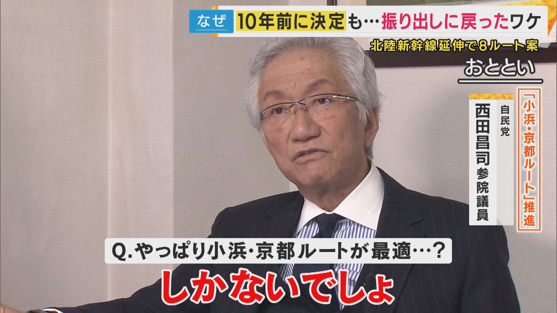 北陸新幹線の大阪延伸“8ルート案”浮上で混沌「小浜・京都ルートしかないでしょ」推進派の自民・西田昌司参院議員に聞く 小浜・京都ルート開通で南海トラフ地震対策にも夢の四国新幹線“関空新幹線”も実現?03月21日 19:00