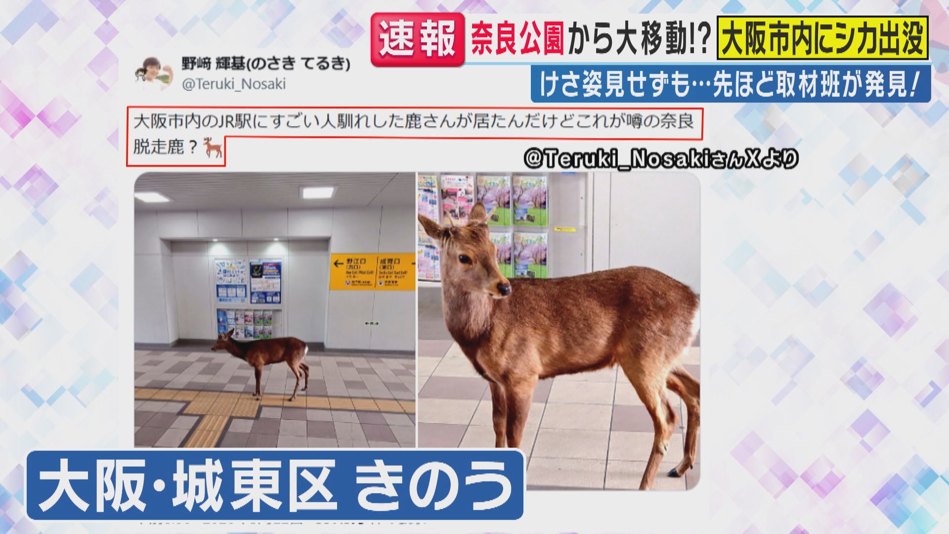 「すき家の店舗前に現れた」という投稿や、「大阪市内のJRの駅に、すごい人慣れした鹿さんが居たんだけど、これが噂の奈良脱走鹿?」というSNS投稿も飛び交いました。