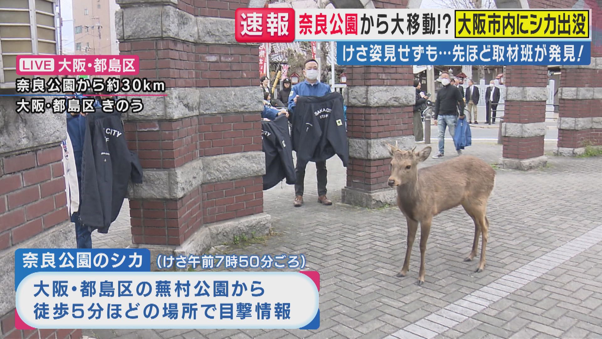 神の使いとして知られる奈良公園のシカが、なぜか大阪の都心に姿をあらわしました。