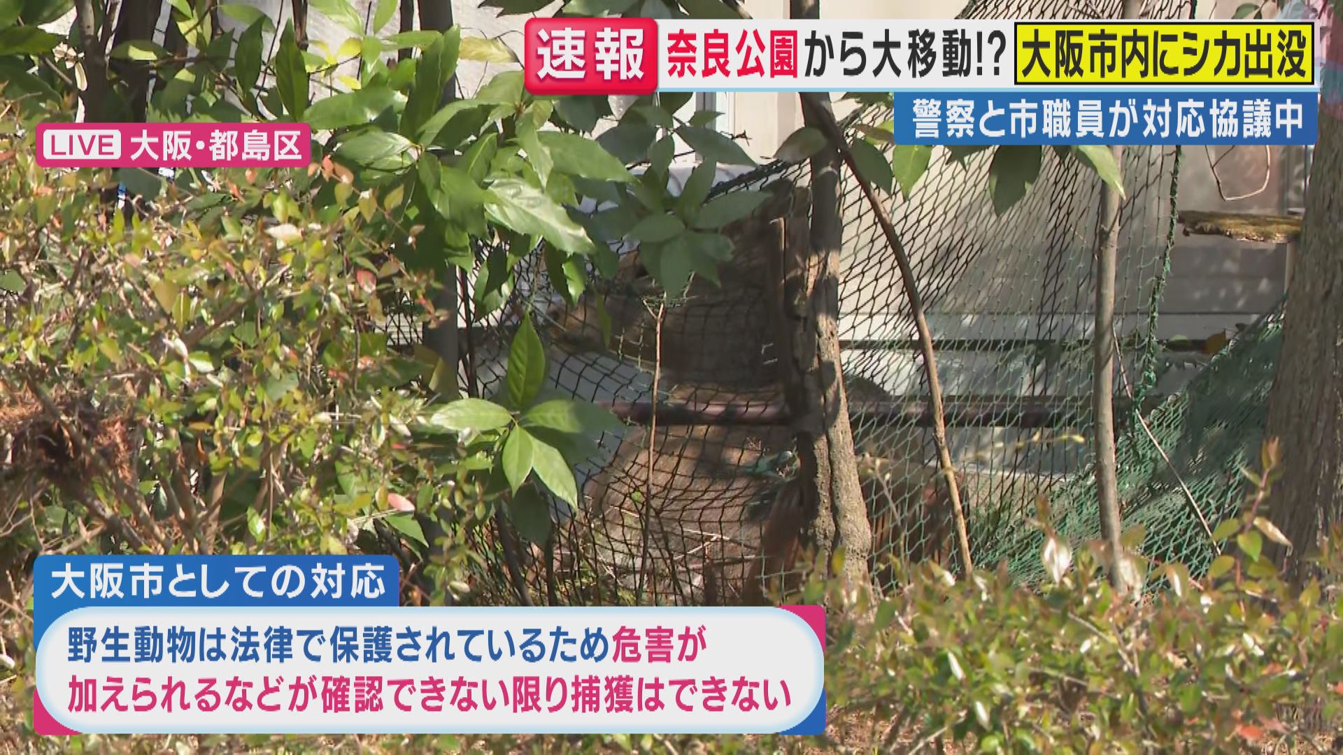 大阪市は「現時点で捕獲する予定はない」と説明しています。「野生動物は法律で保護されているため、実際に危害が確認されなければ捕獲できない」ということです。