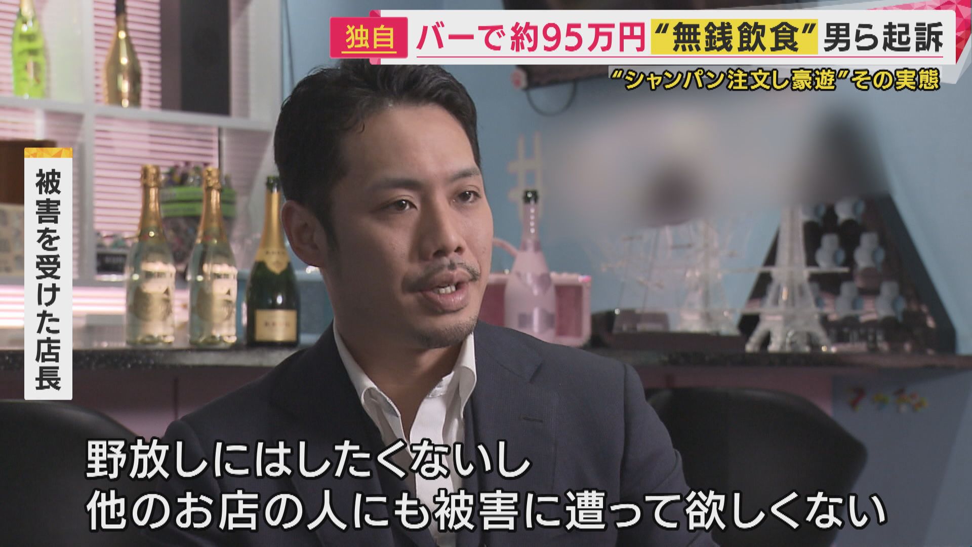 【被害を受けた店長】「原価もすごい高いものを頼んでいるし、損害で言ったらめちゃくちゃ大きい。野放しにはしたくない。他のお店の人にも被害に遭って欲しくない」